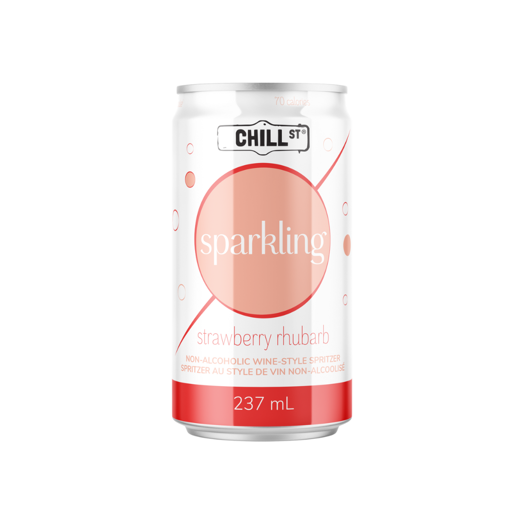 Our Non-Alcoholic Sparkling Strawberry Rhubarb Wine Spritzer dazzles with bright strawberry notes, a subtle rhubarb tang, and lively bubbles, delivering a refreshing and delightful alcohol-free treat.